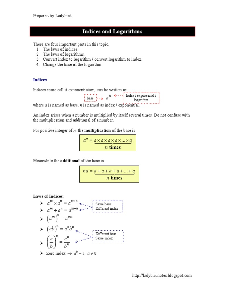 Indices And Logarithms Pdf Logarithm Exponentiation